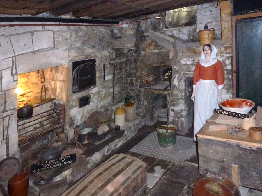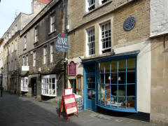 Founded in the 7th century as a monastery, Bath Abbey became an Anglican parish church in 1583. It has been rebuilt or restored several times over the years. Although the church was huge and there was much to see, after spending two hour underground in the baths we were eager to get out into the sun and see the city. We spent less than an hour in the Abbey. Coming out into the Square, we decided to explore Union Passage, narrower than most of the streets leading out of the Square and more "charming." It was a good choice, but we did not have a map and had no idea where we were going. We decided to backtrack to the tourist information center by the Square. Since Sally Lunn;s restaurant, near our hotel, was right around the corner, we thought we would have a light lunch first. It was crowded and we had a little wait, but the food (pea soup and half a Sally Lunn roll) was very good. We also had a look at their "kitchen museum."