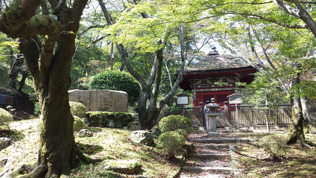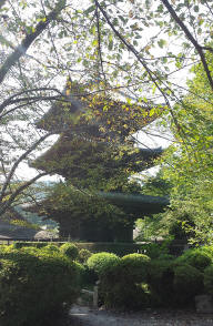 southeast and passed Bishamon Hall (1616), a small red building,