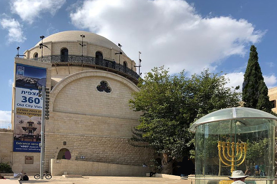 Huvra Synagogue & menorah |