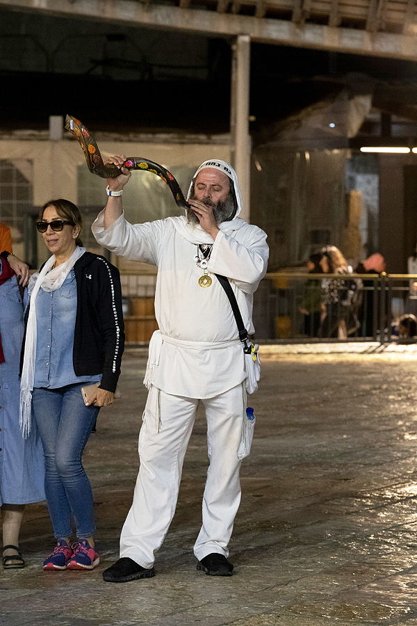 Blowing on a shofar |