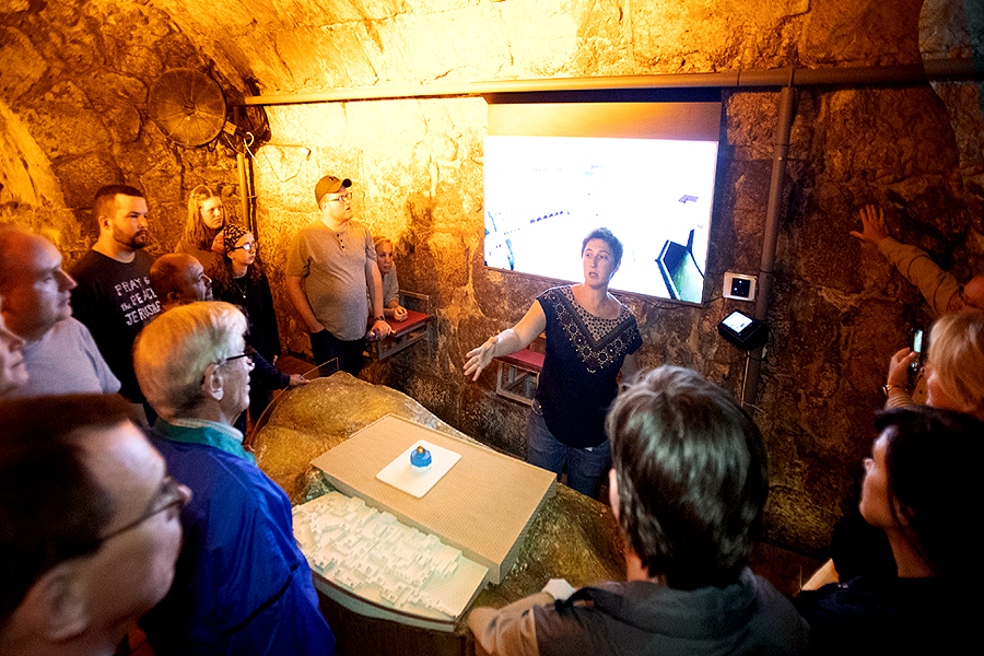 down the stairs leading to the tunnel area. There she briefed us on the tunnel layout and the rules for the walk. She then led us down the final stairs into the tunnel.